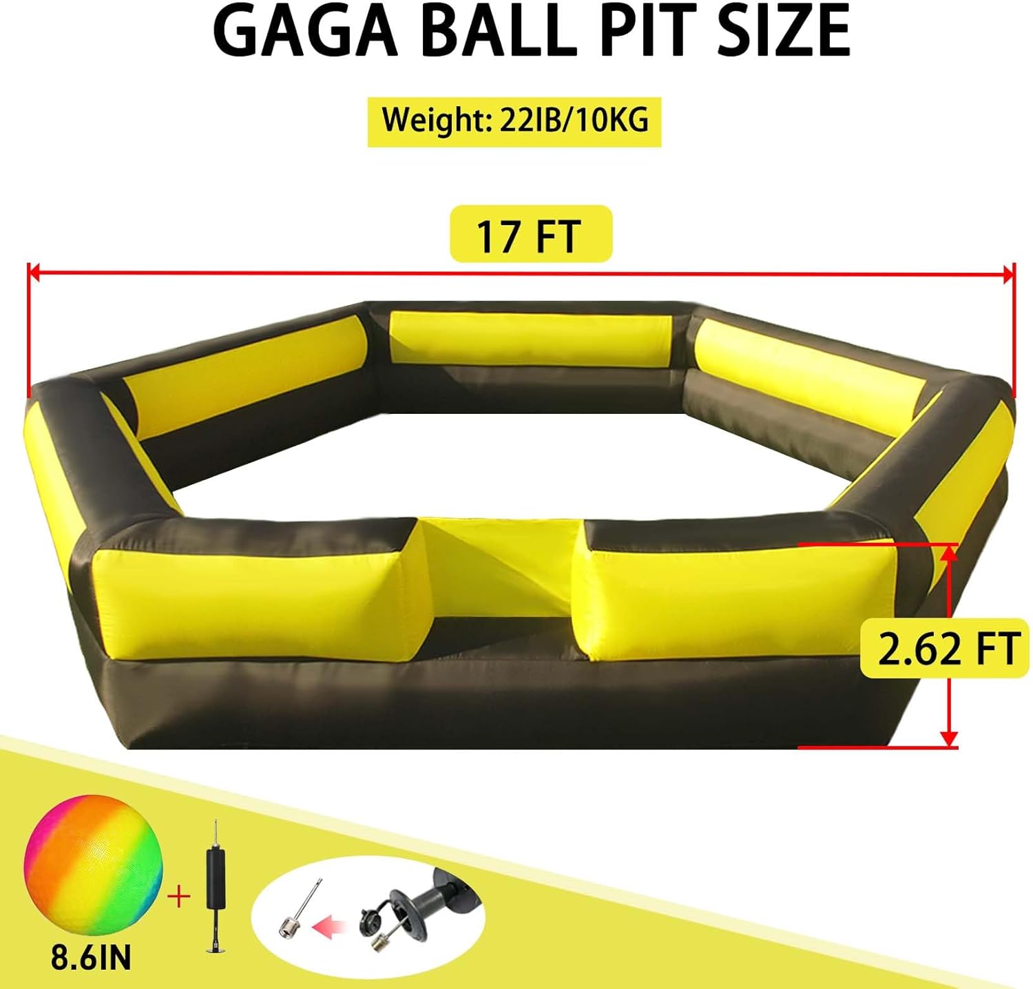 17FT Gaga Ball Pit Portable, Inflatable Gaga Ball Pit with Blower for Indoor Outdoor School Family Activities Giant Inflatable Sport Games for Kids and Adult