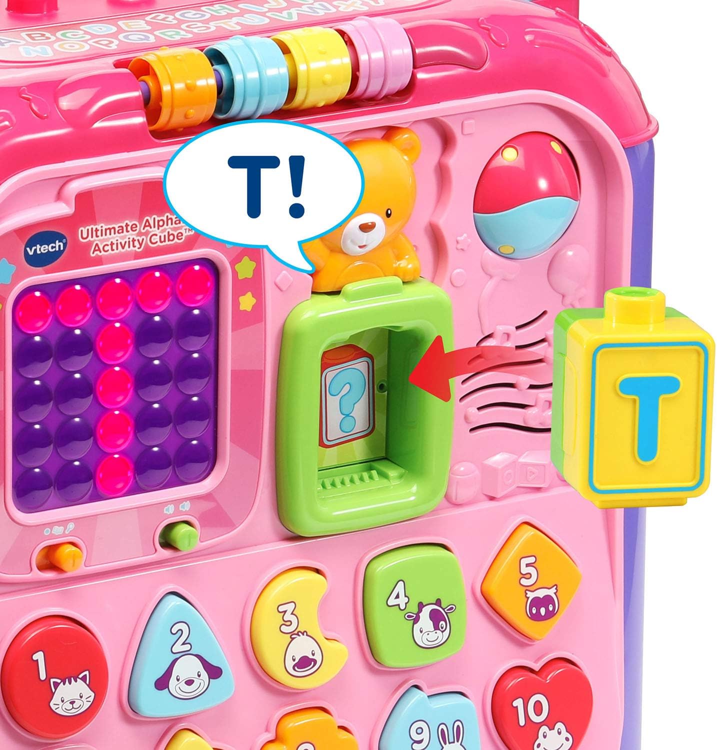 The cube has five interactive sides and includes 13 double-sided letter blocks that provide a variety of developmental benefits for years of play